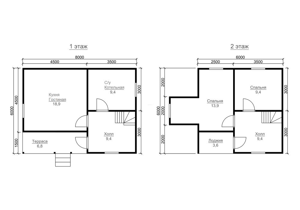 | Под усадку (без отделки) | 6х8 | Cруб дома 190х140 мм | 1734800 | Заказать |