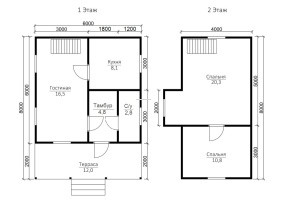 | Под усадку (без отделки) | 6х8 | Cруб дома 190х140 мм | 1554800 | Заказать |