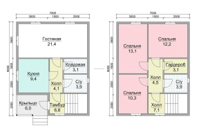 | Под усадку (без отделки) | 7х9 | Cруб дома 140х140 мм | 1952000 | Заказать |